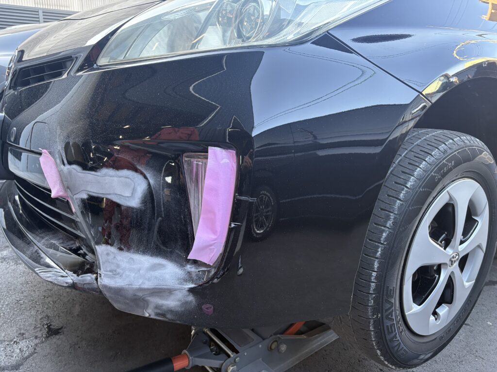 いつも通り運転していたら急に猫が飛び出してきて、、、猫を轢く訳にはいかないと大きく避けて縁石にがっつり、、、と御入庫頂いたのはトヨタ プリウスです😢!!